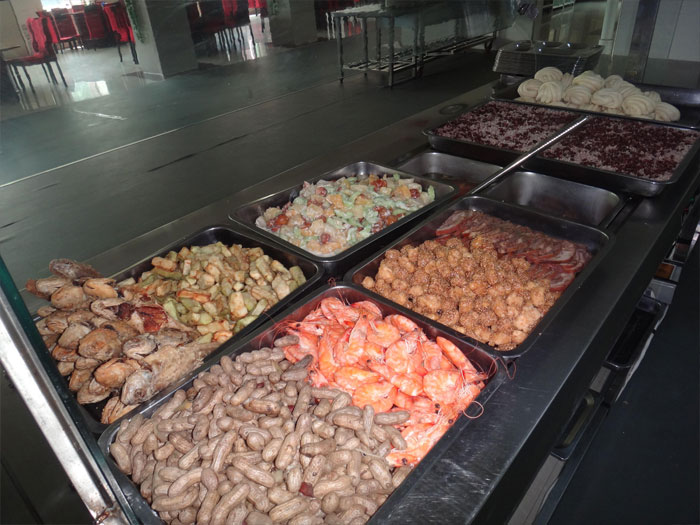 我院打破养老院传统的老人吃饱就行的就餐方式,实行科学配餐,营养配餐,荤素搭配,粗粮细作,品种丰富多样,适合老年人特点的就餐方式,不仅吃饱更要吃好,每天不仅有适合老年人补钙的纯鲜牛奶,还有含丰富植物蛋白质的自磨豆浆、煮鸡蛋,每日菜系达到十几种,有肉、鱼、海鲜和多种菌类,大众菜和细菜相搭配,主食多样,饺子、包子、豆包、馄饨、烧麦、春饼、发面饼、馅饼、盒子、煎饼、玻璃叶子、大果子、槐树花包子、苏子叶粘饺子,各种发糕等,有的老人讲在家也不能吃的这样丰富。主、副食品种之多,味道之美,目前据我们考察在全省内养老院也不多见,特别是三年来金岭矿业有限公司每年都给食堂送来猪、羊、米面补充 让老人吃好。